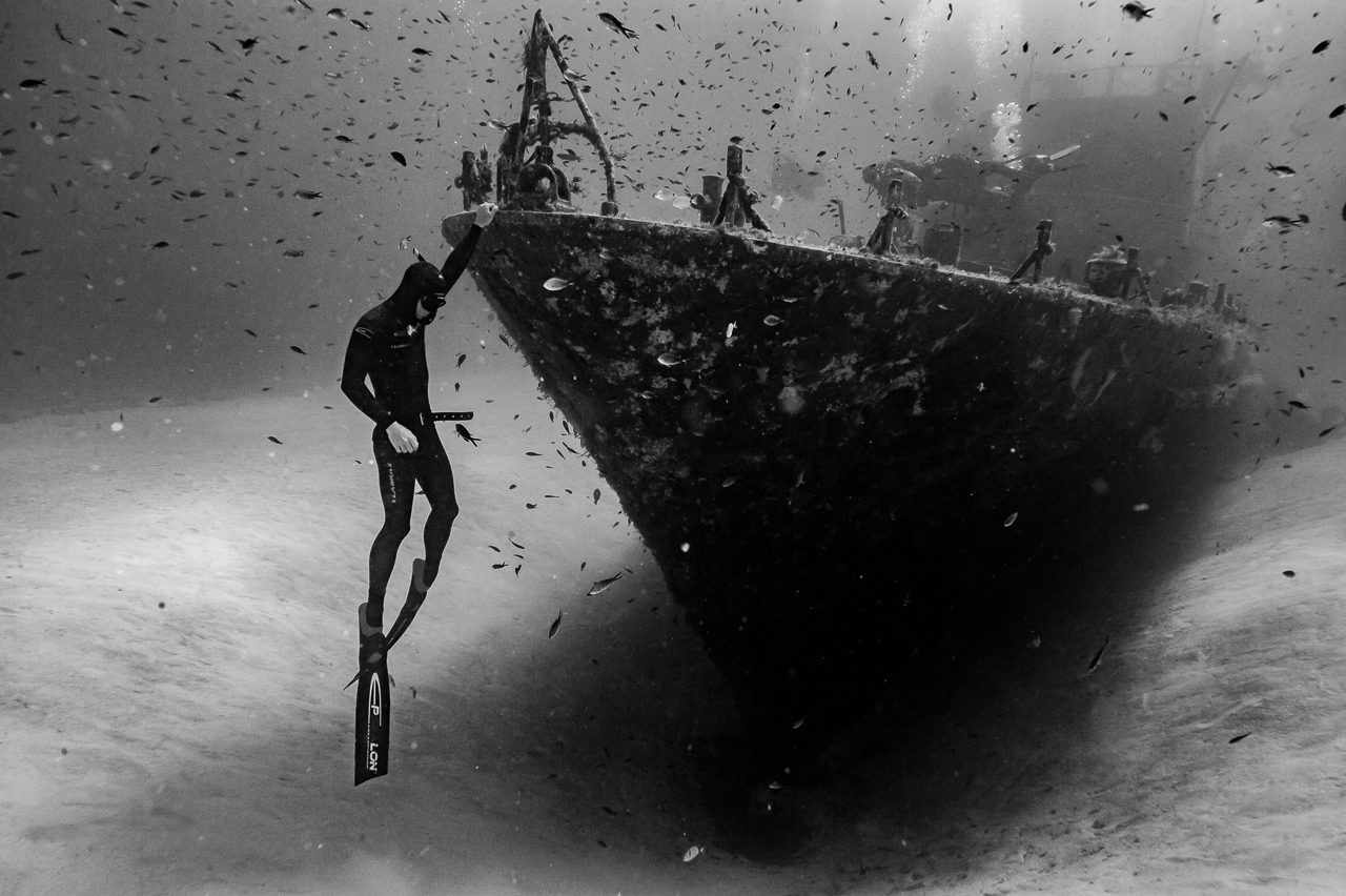 5. Did a commercial shoot freediving to 15m with a broken leg in a cast!