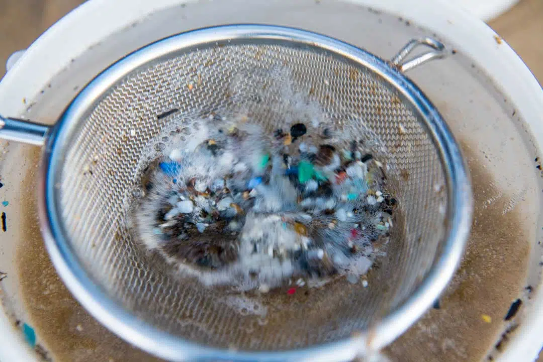 At first glance, North Cornwall’s Watergate Bay is picture-postcard beautiful. Famous for its golden sand beach, consistent surf, great eating and diverse coastal flora and fauna. Once your feet hit the sand though, it is apparent there are problems afoot! The small plastic pieces (microplastic) follow the strandline as far as the eye can see. The team were quick to get to work using their creativity to collect some of the plastic. Within fifteen minutes of collecting the waste, we were able to fill numerous buckets and create the ‘sandcastle’ below!